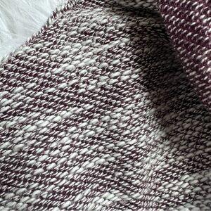 Asymmetrical. Wine colored. Purple maroon. No flaws. Soft and cozy. Fitted arms with loose, flowy bodice. Textured weave knit. 24.5” from shoulder to hem.