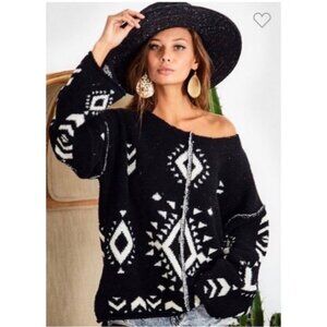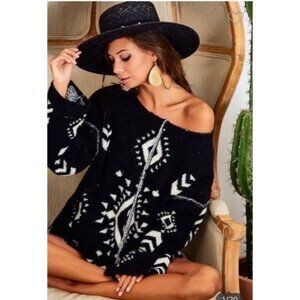 NWT Black White Slouchy Aztec Sweater | Boho Coastal Cowgirl Whimsigoth Tribal S