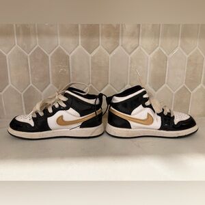 Air Jordan 1 Mid SE Black / Metallic Gold - White - Little Kid size 11