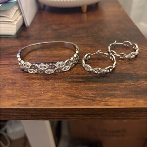 Stunning silver bracelet and earring set with intricate design. Perfect for any occasion.