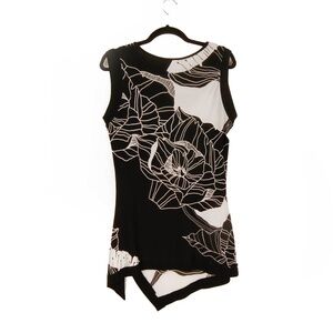 Elegant sleeveless top with bold floral pattern. Asymmetrical hem adds style. Perfect for any occasion.