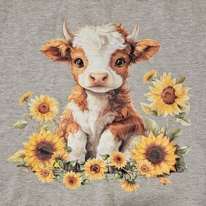 NWT Gray Sweatshirt with Highland Cow and Sunflowers. Size L