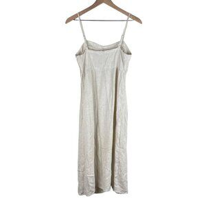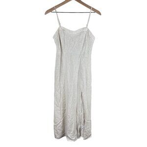 NWT Altar'd State Natural Beige Sadie Linen Slit Midi Dress. Sweetheart neckline. Leg slit. Sleeveless. Adjustable spaghetti straps. Side zip closure. Neutral, minimalist, cream, summer, vacation, beachy. Rayon linen blend. Retail: $85. Size Small. Armpit to armpit: 15". Length: 42.5". Slit: 17". (119)