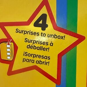 Rainbow Brite doll with bright yellow hair. Dressed in a colorful blue outfit. Perfect for imaginative play. 4 surprised inside!