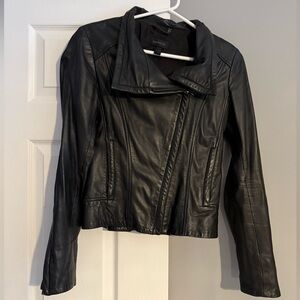 Chic black leather jacket by Danier. Perfect for adding edge to any outfit.