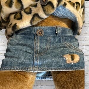 • 2 piece outfit: 1 Jean jacket reversible to fleece leopard print. 1 Jean skirt