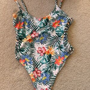 Vamped Tropical Floral One Piece Swimsuit Medium Cutout Sides Monokini