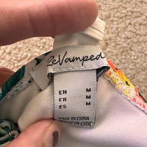 Turn heads at the beach or pool in this gorgeous Vamped tropical floral one-piece swimsuit in size Medium. Featuring bright hibiscus flowers, lush palm leaves, and a flattering side cutout monokini design, this suit accentuates curves while offering adjustable comfort.