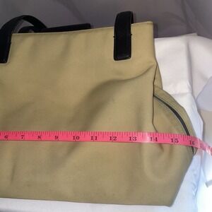COACH Khaki Twill Canvas Leather Handle Shoulder Bag Purse 7402 Tan Black