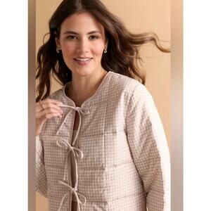 Stoosh Gingham Quilted Tie-Front Jacket Sz M Beige Cream Cottagecore NWT