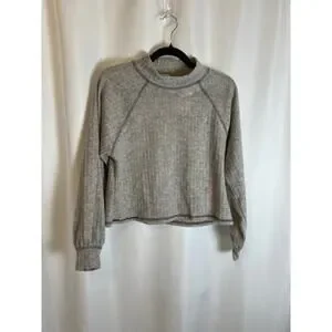 Lush Mockneck Cropped Ribbed Long Sleeve Sweater Plush Heather Grey Size XSmall