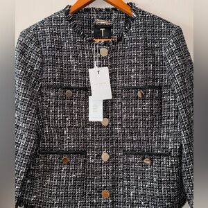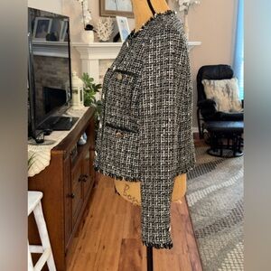 Ted Baker NWT Klaudi Metallic Bouclé black white Tweed Fringe button up Jacket 4