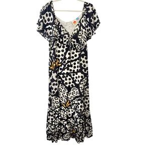 Perfect condition Farm Rio Anthropologie Flutter Sleeve Maxi Dress Black white yellow sz Medium