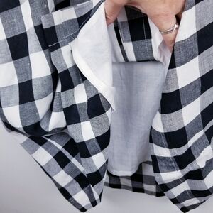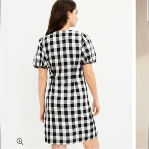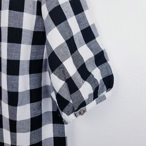 Loft Gingham Linen Blend Button Front V-Neck Dress, size 12