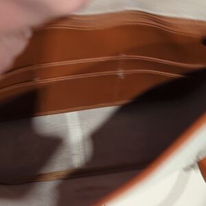Definitely a well-loved leather shoulder bag. Features white and brown design. Classic buckle accent. Ideal for daily use. see photos for call outs. There are no tears or rips in the leather. however, this bag needs some TLC