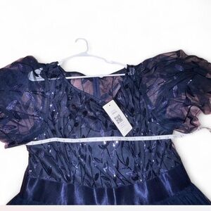 Beautiful navy blue Ever-Pretty gown featuring a sequin-embroidered mesh bodice, flutter sleeves, and a flowy tulle maxi skirt. Elegant, flattering, and perfect for weddings, prom, evening events, or photoshoots.