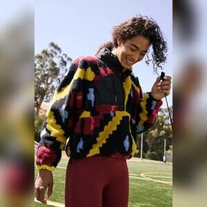 Free People Hit The Slopes Printed Fleece Pullover - Moroccan Night Combo - S
