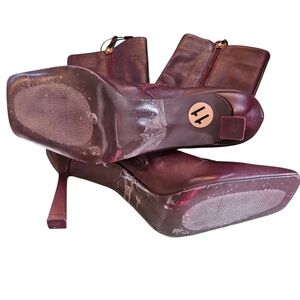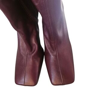 NEW Zara Women's Burgundy Leather Boots Square Toe Size EU 42 US 11