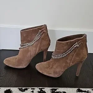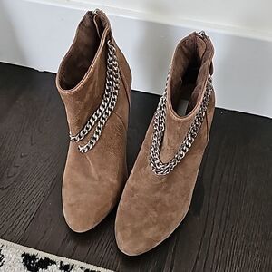 Dolce Vita Kendal Almond Brown Suede Chain Detail High Heel Ankle Boots Size 7