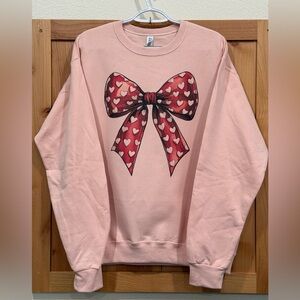 Valentine’s Pink Sweatshirt with Heart Bow Design, Coquette, Size Medium