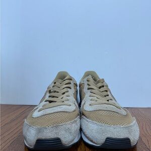 Nike shoes with a beige upper and gray accents. Comfortable and stylish for everyday use.