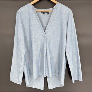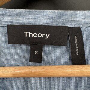 Theory Women's Ofelia Cotton Chambray Split Back Tunic Blouse S Light Blue