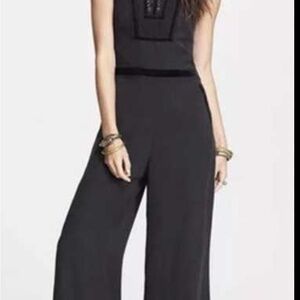 Free People Wide Leg Tuxedo Jumpsuit with lace and black velvet details. Size 8 (true to size)