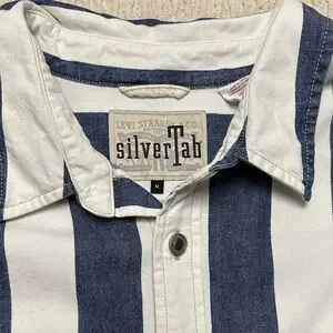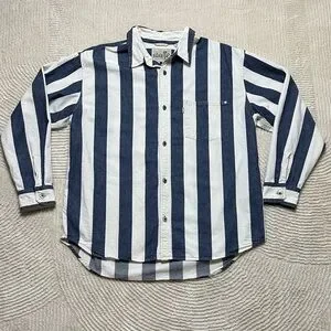 Silver Tab Levi’s Jeans Navy and White Striped Casual Shirt Oversized M