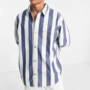 Casual button-down with bold navy and white stripes. Perfect for relaxed outings. Classic style with a modern touch.