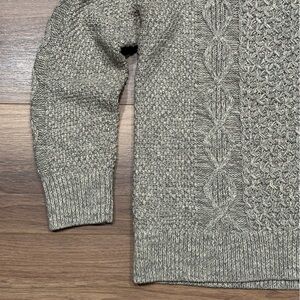 L.L.Bean Signature Fisherman Cable Knit Cotton Funnelneck Sweater in Gray. Size Medium. Excellent preowned condition, gently worn. Kangaroo front pocket. 100% Cotton. Pit to pit measures 19” and Length 24”.