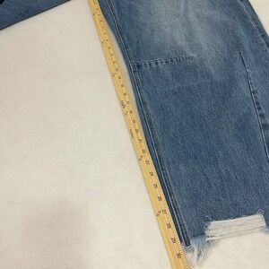 BAYEAS Frayed Hems Drop Crotch Barrel Jeans 31 Distressed Wide Leg Blue Denim