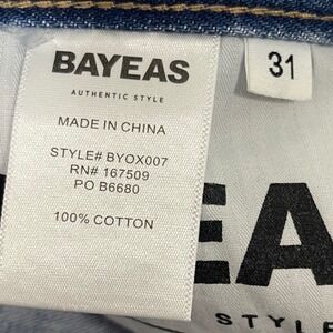 Keywords: Bayeas Jeans, Wide Leg Denim, Distressed Jeans, Raw Hem, High Rise, Casual Style, Streetwear, Everyday Wear, Comfortable Fit, Fashionable Denim, Relaxed Fit, Edgy Style, Size 31