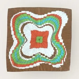 Vintage, 1970s sacred geometry patterned scarf. Semi-sheer. The white color is actually clear & see thru! (Photos are set on white background) Rich, bold earth tones make this vintage piece perfect for the fall season. The pattern creates an optical illusion of depth and movement. Could definitely be used for more than just a scarf.