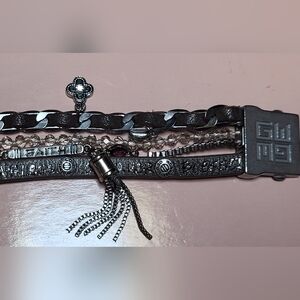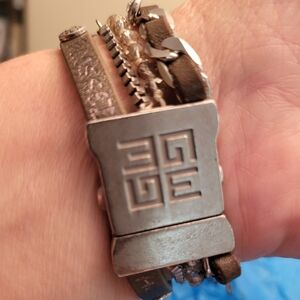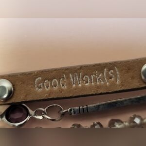 This silver Good Work(s) bracelet is a stunning piece of handcrafted jewelry. Its design mixes silver tone metals, leather, crystals and charms, and its high-quality craftsmanship makes it a versatile accessory for any occasion. Etched with inspirational words like: Hope, Strength, Fearless, Conquer, Blessed, Faith, Inspire and Empower. Perfect for adding a touch of class to both casual and formal outfits.