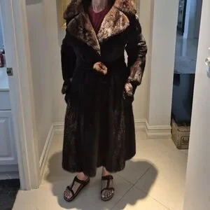 This vintage Mink Coat in a beautiful brown color is a luxurious addition to any woman's wardrobe. With a long length and a button accent, this overcoat exudes classic elegance and sophistication. The fur outer shell material adds a touch of luxury and warmth, making it a practical and stylish choice for colder weather. Perfect for a Size 10 woman looking to make a statement with their outerwear.