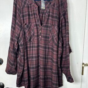 Torrid Harper Brushed Tunic Pullover Brown Plaid Sz 5 (28) Long Sleeves NWT