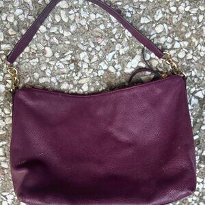 Keywords: Kate Spade shoulder bag, burgundy leather purse, wine leather handbag, pebbled leather designer bag