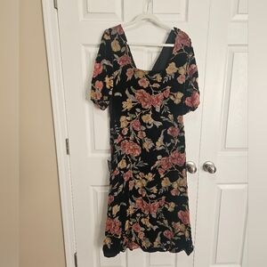 Lulus Gloriously Chic Black Floral Burnout Short Sleeve Midi Dress L