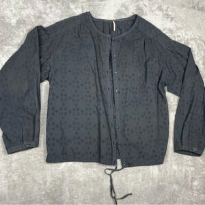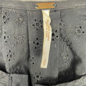 Free People Stars Align Black Eyelet Beachy Boho Minimal Button Tying Top