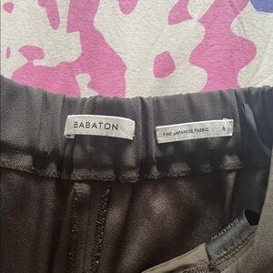 Babaton dark olive slim-fit mid-rise pants with pockets and an elastic waist. Size 6. Great condition. Waist 15 inches before stretch, length 35.