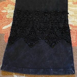 EUC. Lovely, soft & stretchy with 5” lace detail around lower leg. W15-18, rise 10, inseam 30”.