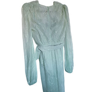MISHA V-Neck Sheer Lace Maxi Dress Pistachio Size Small