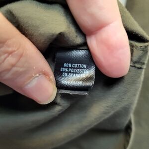 This stylish button-down shirt from Express features a fitted silhouette with long sleeves and a notched collar, all in a versatile green hue. Perfect for both casual outings and more polished occasions, this top combines comfort with a sleek, tailored look.