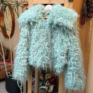 Free People Moonlight Faux Fur Jacket in Granite Green
