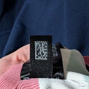 Condition: Good pre-owned condition. Note: Small faint stain on the white stripe near the bottom hem.