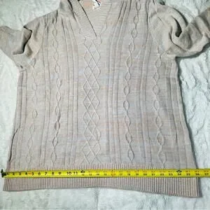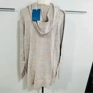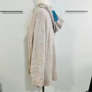 Market & Spruce Size 3X Casual Preppy Tan Neutral Cable Knit Hooded Sweater