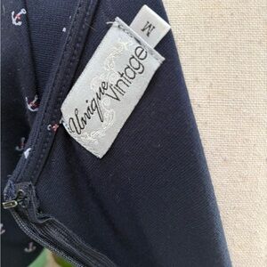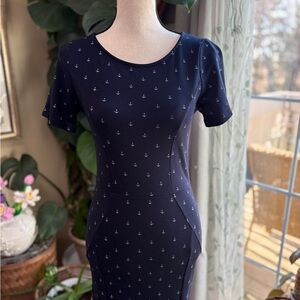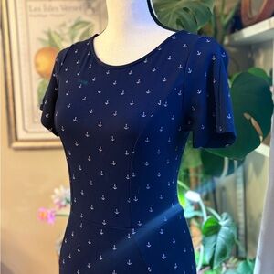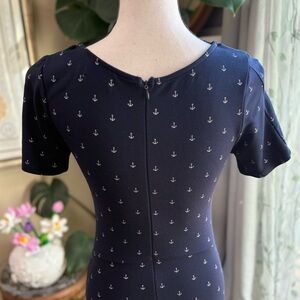 UNIQUE VINTAGE dark blue midi dress with nautical anchor pattern. Ideal for seaside strolls or casual gatherings.