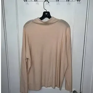 Ava & Viv pullover knit sweatshirt, new with tags still attached (small stitching is coming undone on the left back shoulder in last photo), drawstrings around the neck, color is cream as shown, made of viscose, polyester, and nylon, size 1X womens