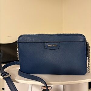 EUC Nine West Navy Crossbody Bag with Silver Chain Strap
