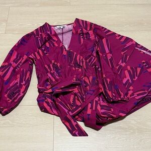 CELINA MOON Pink and Purple Patterned Long Sleeve Midi Dress NEW